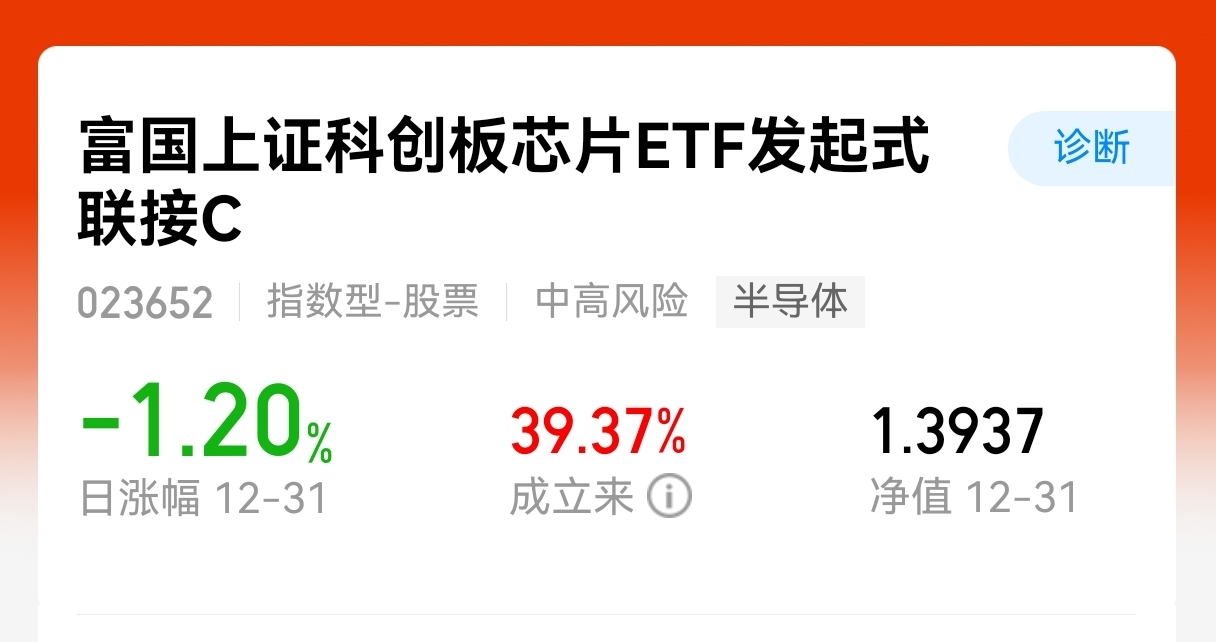 又是上涨的一天,行情越来越好了,新的一年好兆头,芯片表现很出色,本轮芯片周期正在再次“共振向上”,这个行业兼具成长性与周期性,平均4–5 年形成一轮中周期。目前行业正处于启动的新一轮上行初期,景气抬升的信号已经逐步显现,$富国上证科创板芯片ETF发起式联接C$ 业绩真优秀,近六个月涨幅39.69%,今日继续上涨,继续加。