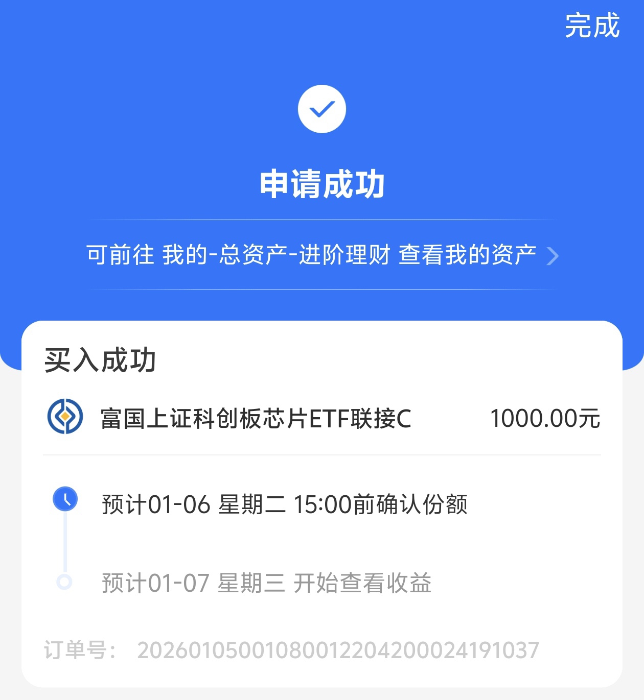 行情好转,三大指数全线飘红,上涨。今天我也是布局了$富国上证科创板芯片ETF发起式联接C$ +1000元,基金目前估值上涨了4.04%,今晚吃大肉。随着全球供应链重构叠加信创市场扩容,科创芯片企业在设计、材料、设备全链攻坚。区域产业协同形成发展梯队,AI 设计工具缩短研发周期、降低成本,细分龙头营收利润高速增长。叠加先进制程与成熟工艺协同发力,政策红利与产业共振,科创芯片成长空间广阔。长期持有,投资回报率高,期待后期收益。