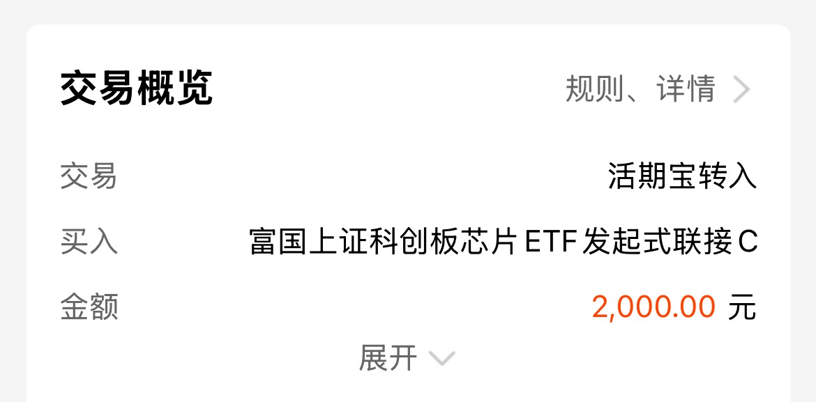 节前芯片就有抢跑的迹象,节后开门第一天更是开启加速模式,手上今天可算是加鸡腿肉!还是20cm的弹性大,我继续顺势而为加一份$富国上证科创板芯片ETF发起式联接C$ 。