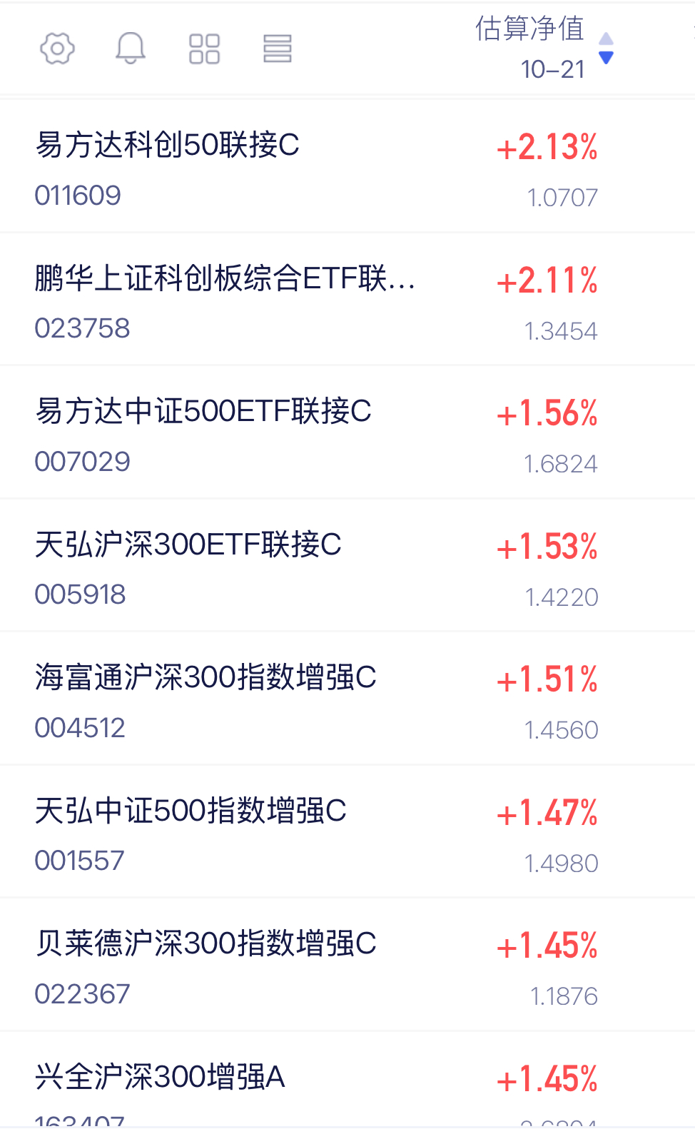 反弹来了!不愧是科创板,反弹的时候总是充当急先锋,上午收盘。大盘收涨0.69%,$易方达上证科创50联接C$ 盘中预计2.13%,所以说,行情好的时候买科创板就对了,$易方达上证科创50联接C$ 跟踪科创50很绝,基本没有误差,创业板50指数是从科创板中优选50只各行业龙头组成的,集中度更高,弹性自然也更大一些,如果纠结行业,短期博弈的,科创50指基0申购费,7免也是个不错的选项。