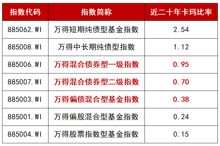 万得偏债混合型基金指数基日为2003年12月31日,2020-2024年收益率分别为13.21%、5.61%、-3.78%、-0.96%、5.34%。