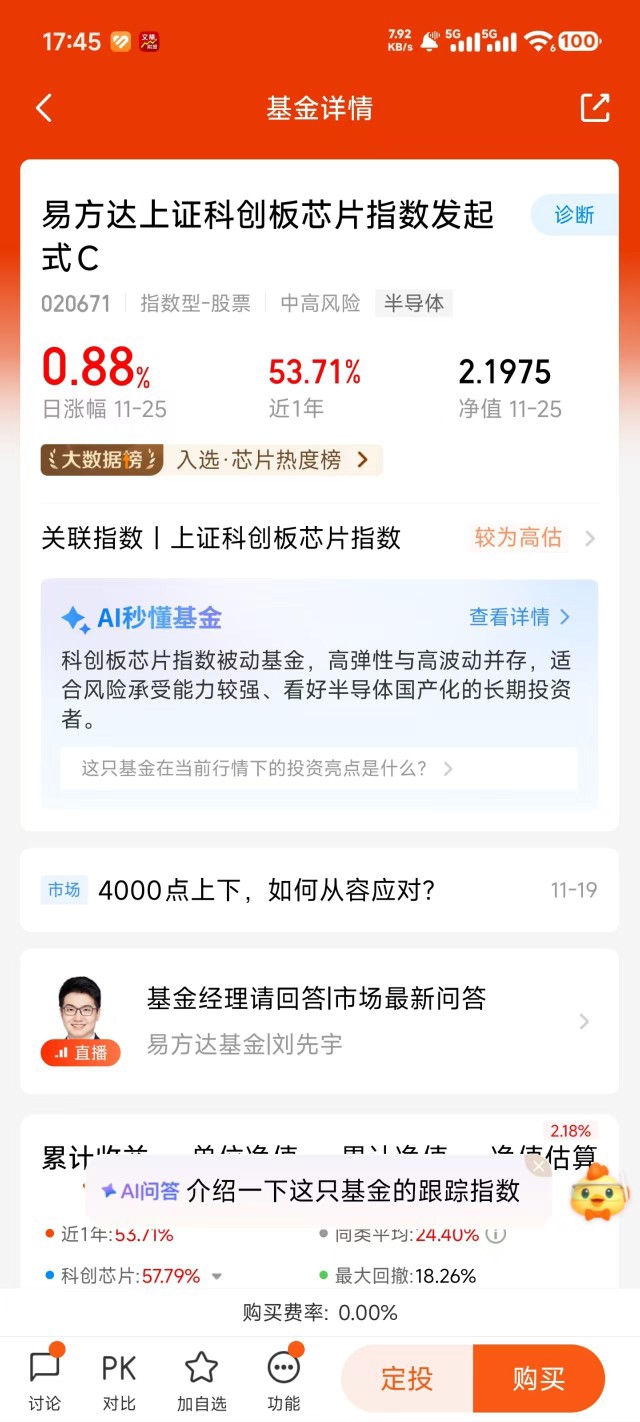 嚯,昨天英伟达业绩超预期,全球AI泡沫担忧缓解,连带A股芯片情绪回暖。国内“人工智能+”行动方案也在落地,算力芯片需求迟早爆发。持有科创芯片,不就是押注AI硬件底座嘛!$易方达上证科创板芯片指数发起式C$