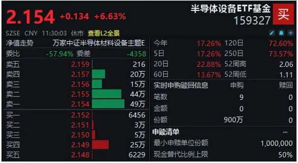 在指数上行的预期共识下,一个核心领涨赛道已率先突围——半导体设备板块开年便掀起涨停潮,半导体设备ETF基金(159327)开年以来短短两个半交易日涨幅达17.26%,截至今天午盘,大涨6.63%。