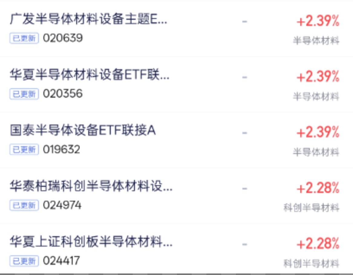 万家中证半导体材料设备主题ETF联接C持仓前两大就是中微和北方华创,都是刻蚀、薄膜沉积设备的扛把子。现在全球搞AI,算力需求爆了,持续看好不是空话,是趋势在印证。AI引爆算力需求,存储芯片涨价,台积电、海力士纷纷砸钱扩产,设备商订单接到手软广发中证半导体材料设备ETF发起式联接C精准卡位这个高景气赛道,今天涨幅更高,行情远没走完,趁着节前还是布局一波