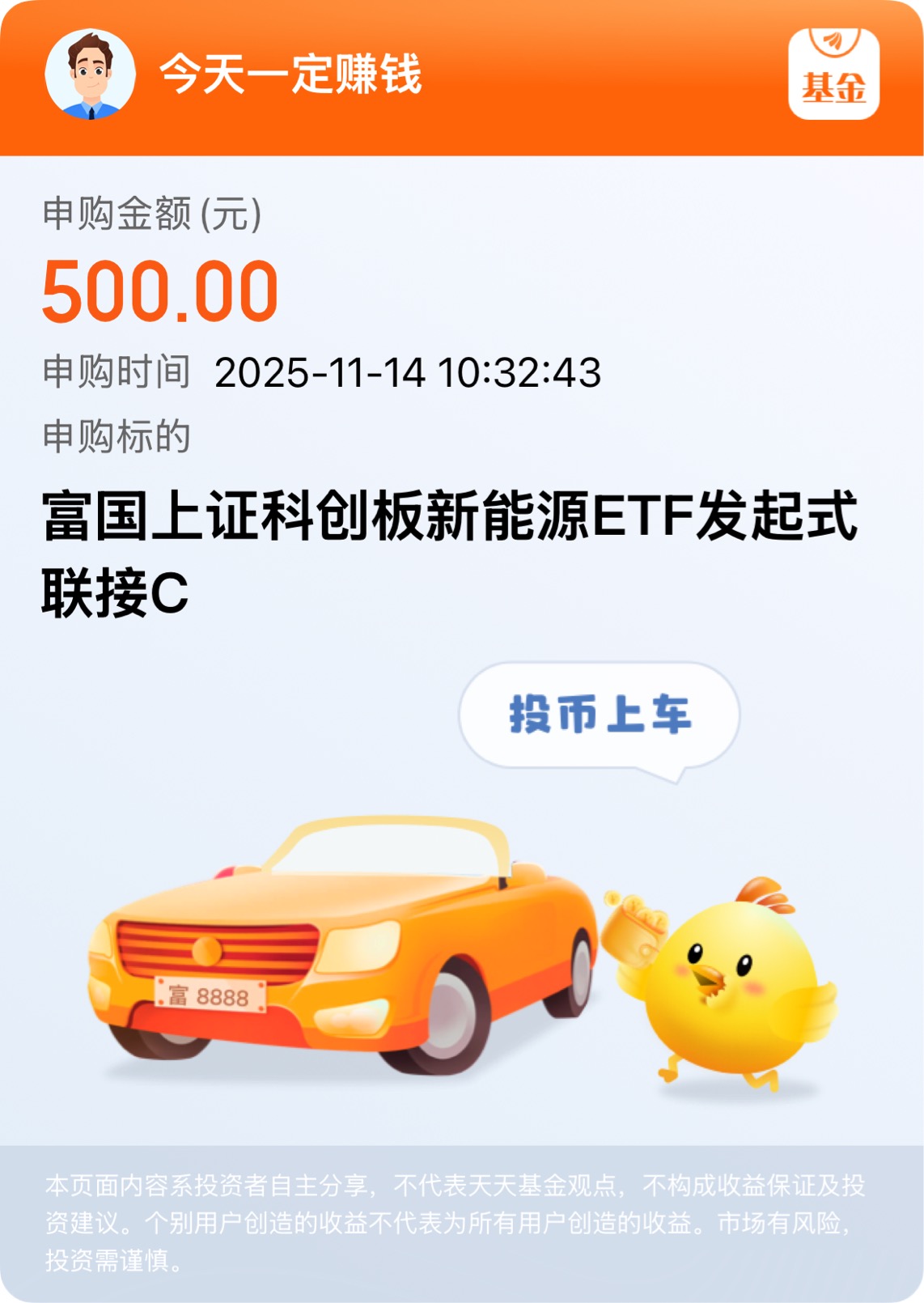 今日早盘科创新能指数逆市上涨,截至11点25分,涨幅达到了1.36%,纵观近半年,其4月以来已经累计上涨70%。所以,今日趁机建仓了一笔$富国上证科创板新能源ETF发起式联接C$