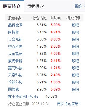 富国上证科创板新能源ETF发起式联接C(023852)精准踩中今日热点,它联接的场内基金富国上证科创板新能源ETF(588960),上午收盘大涨4.82%,持仓全是光伏等新能源概念股,红色一片,看着就赏心悦目。