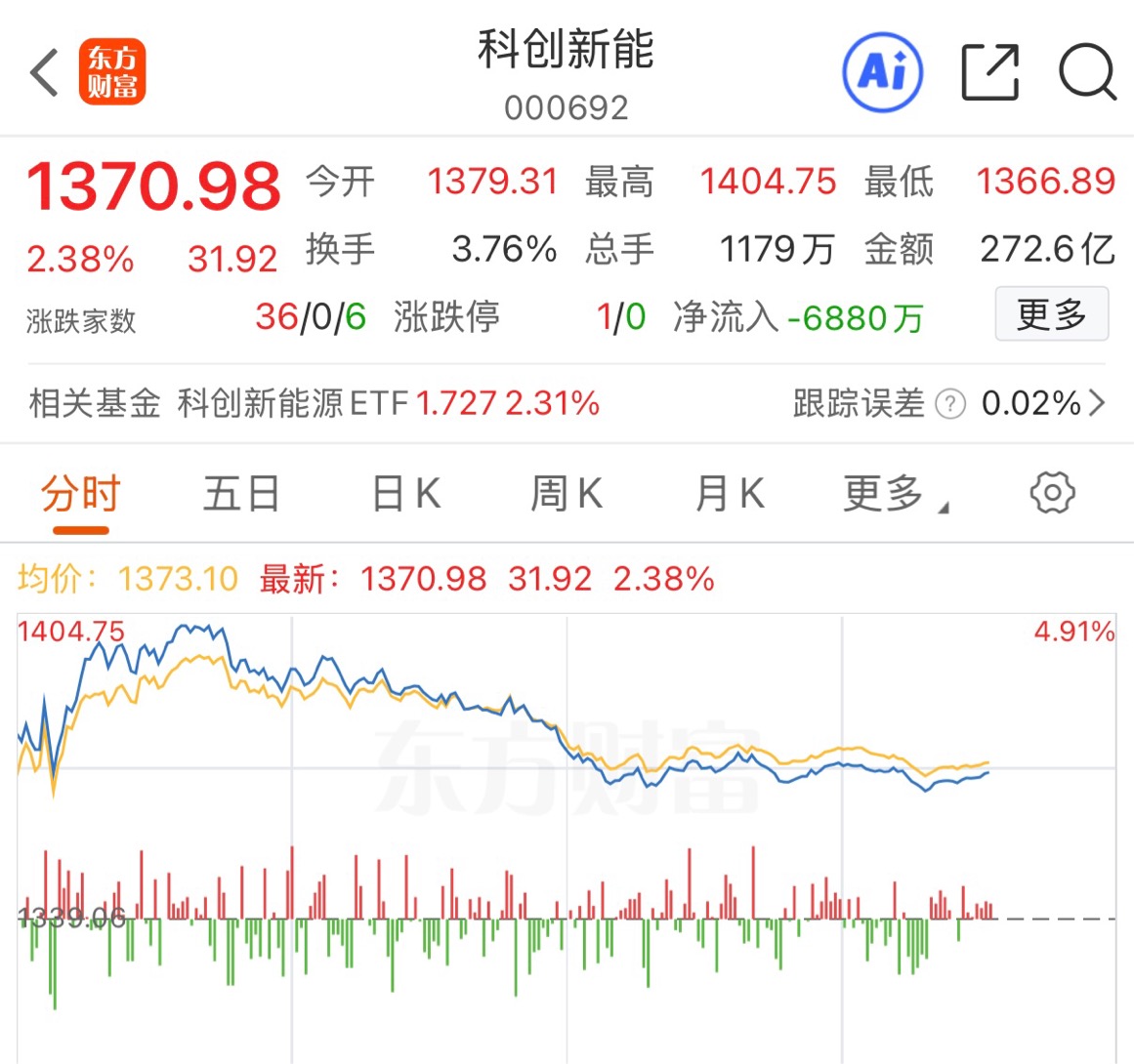 很多小伙伴不知道从哪看估值,我在东方财富app看的指数涨跌哦!比如$富国上证科创板新能源ETF发起式联接C$ 跟踪的科创新能指数这会看涨2.3%左右,基金涨幅也会接近这个数,大家可以参考一下。