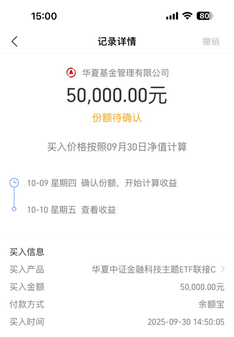 $华夏中证金融科技主题ETF发起式联(OTCFUND|023885)$ 希望一切都是好的开始...