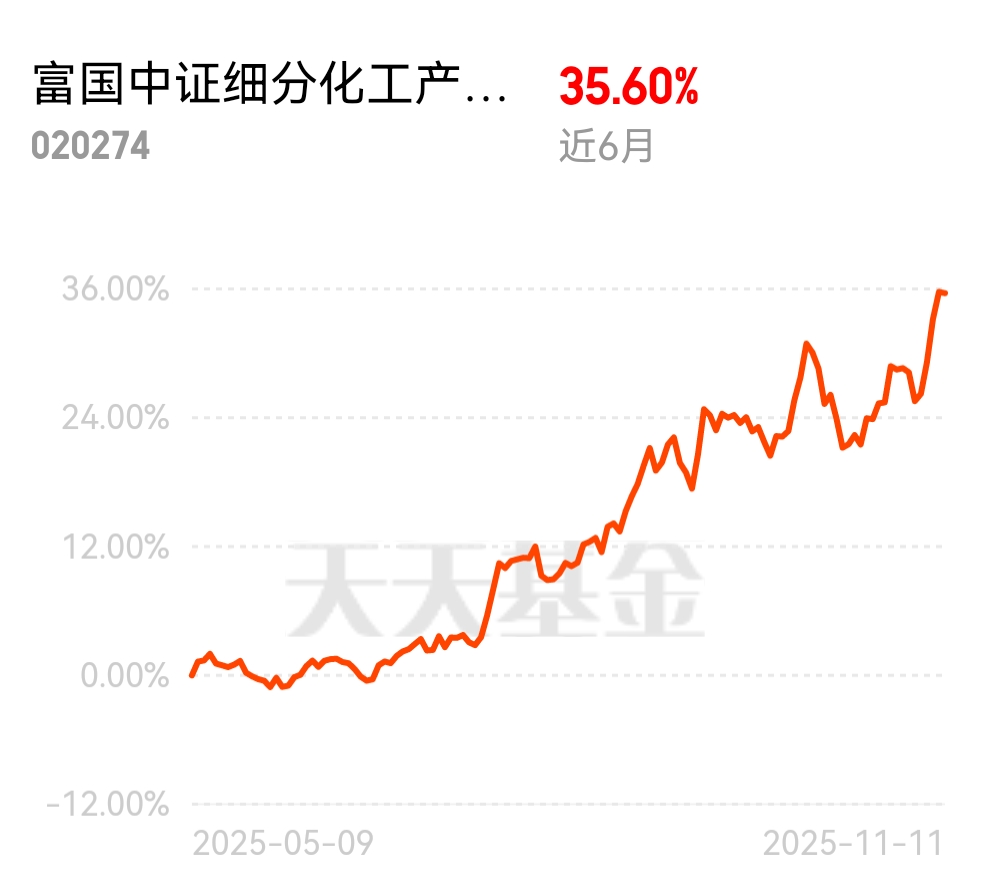 ,后者近6个月涨了36%,跟踪误差仅0.3%,跟指数几乎严丝合缝,化工这波反弹确实没踏空。
