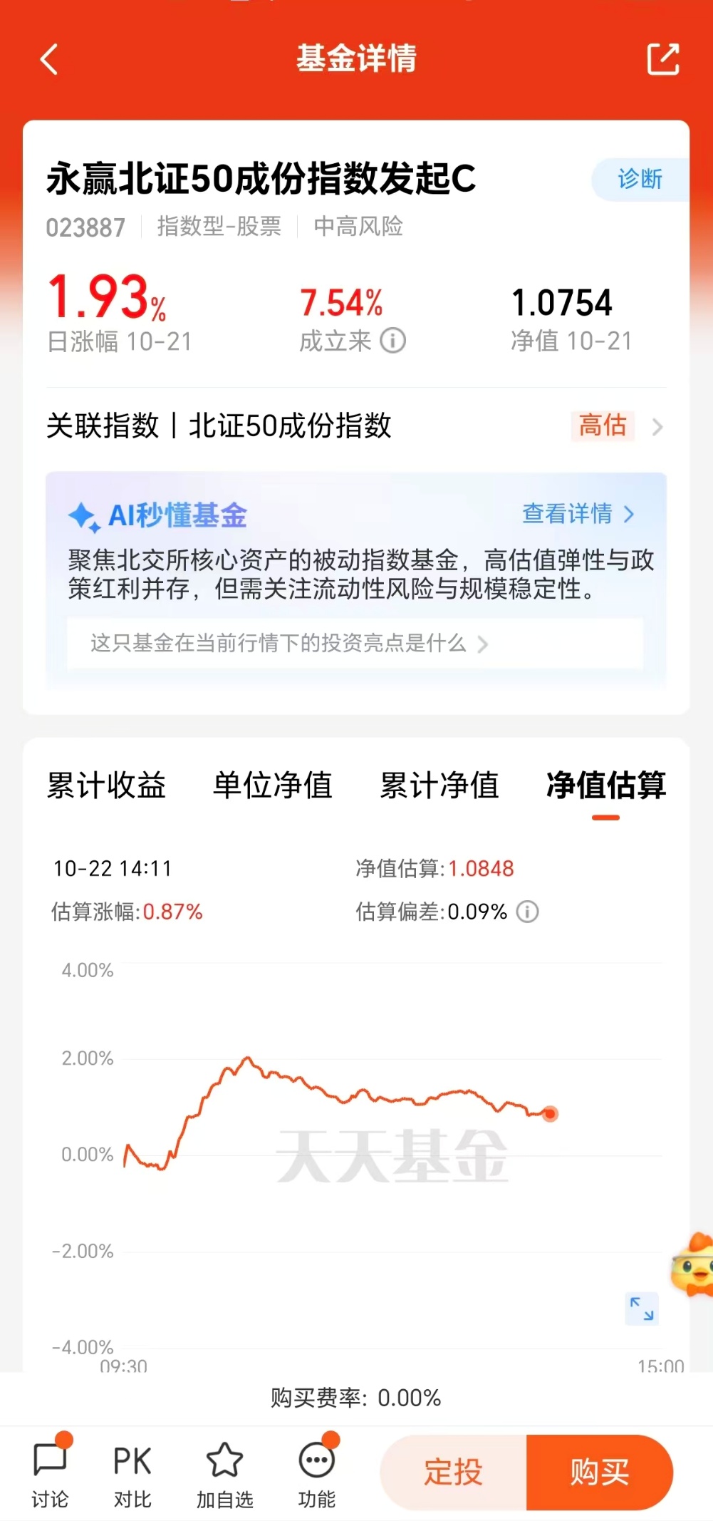 在经过前期调整后,北证50再度展现出强大韧性,而紧密跟踪它的$永赢北证50成份指数发起C$ (023887)也迎来强势反弹,昨日单日上涨1.93%,成功止跌,今日预估继续上扬1%,做多动能充沛。更值得关注的是,该产品目前额度充足,完全不设限购,为投资者提供了极大的操作便利性。