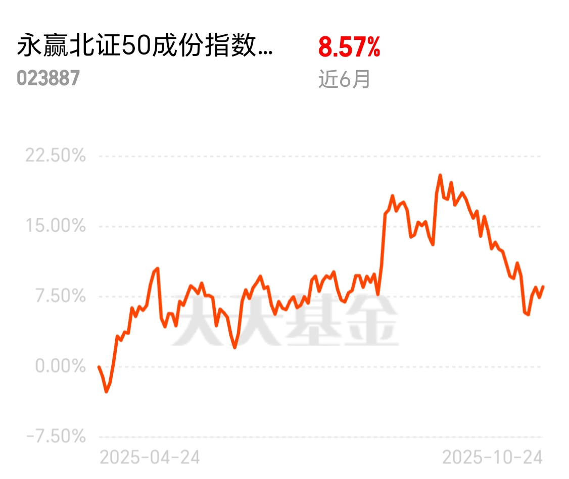 $永赢北证50成份指数发起C$ 紧密跟踪北证50指数,聚焦北交所专精特新中小企业,行业配置集中:重仓计算机(10.35%)、电力设备(12.56%)等高成长赛道,同时布局美容护理(8.82%)等消费升级领域。成立以来涨8.48%,目前不限购,看好北证50的投资前景,重点关注了。$永赢北证50成份指数发起C$