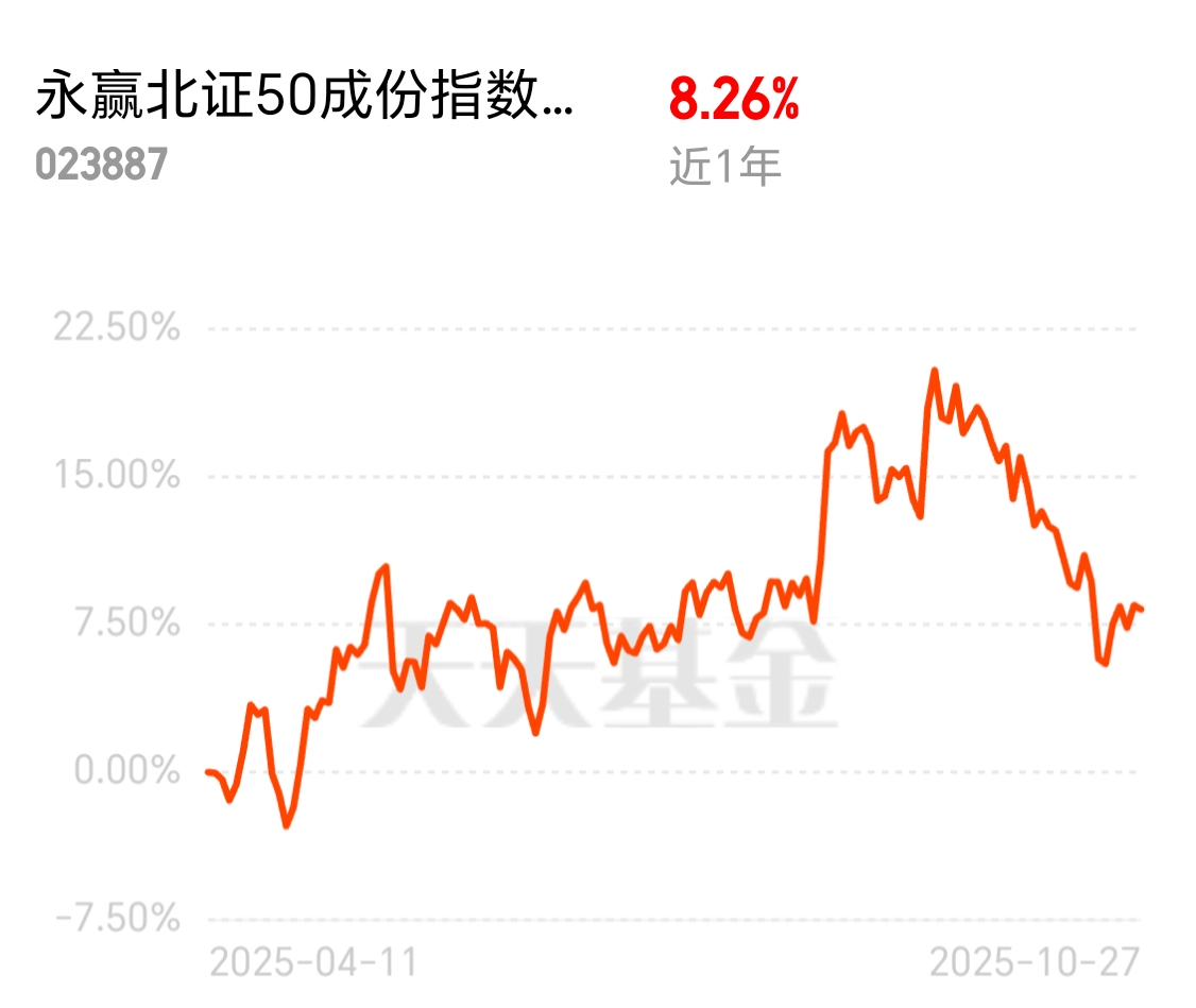 $永赢北证50成份指数发起C$ 紧密跟踪北证50指数,聚焦北交所专精特新中小企业,行业配置集中:重仓计算机(10.35%)、电力设备(12.56%)等高成长赛道,同时布局美容护理(8.82%)等消费升级领域。成立以来累积涨幅8.26%,目前不限购,看好北证50的投资前景,重点关注了。$永赢北证50成份指数发起C$
