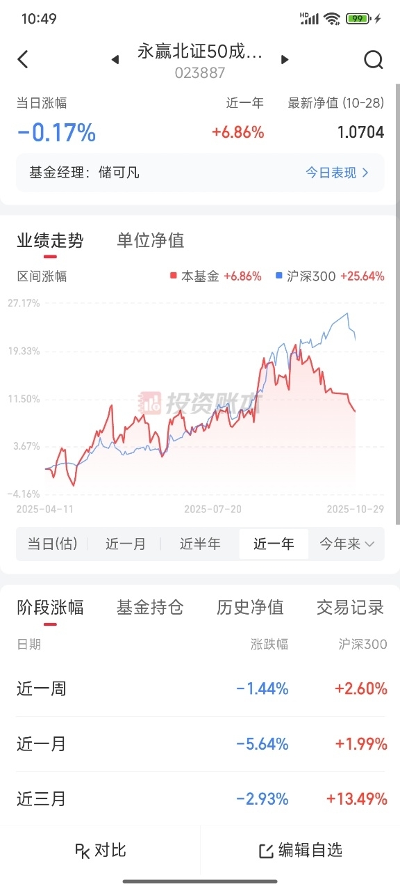 调整就是机会,今天准备上车,只要趋势好,跌下来就可以上车,永赢北证50指数C023887,这基不错,近六个月收益率10.06%,在同类中排名也是比较优秀的,估值非常低,上涨空间大,现在的性价比还蛮高呢。