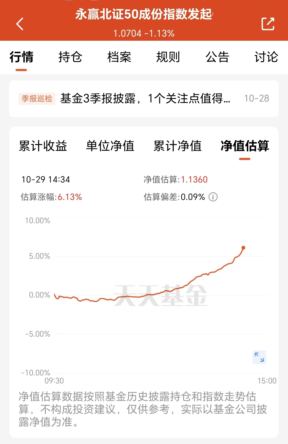 北证50指数行情火热,成为近期资本市场的一大亮点。对于希望参与这场行情的投资者而言,$永赢北证50成份指数发起C$ (023887)提供了一个额度充足、不限购的理想工具。该基金紧密跟踪北证50指数,助力投资者轻松把握北交所企业增长机遇,无需受限于申购额度,今天大涨超6%。