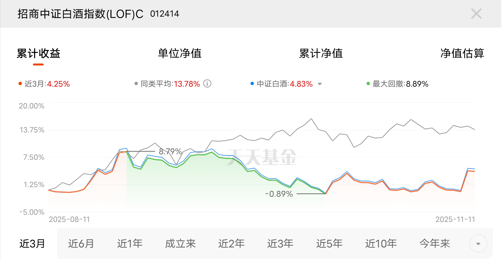 资金正在快速从科技板块撤离,转向估值更低、确定性更强的消费领域,消费转好趋势清晰。招商中证白酒指数C今日估值没跟上业绩涨幅,近3个月业绩4.25%,顺应市场高切低潮流,配置价值很高。