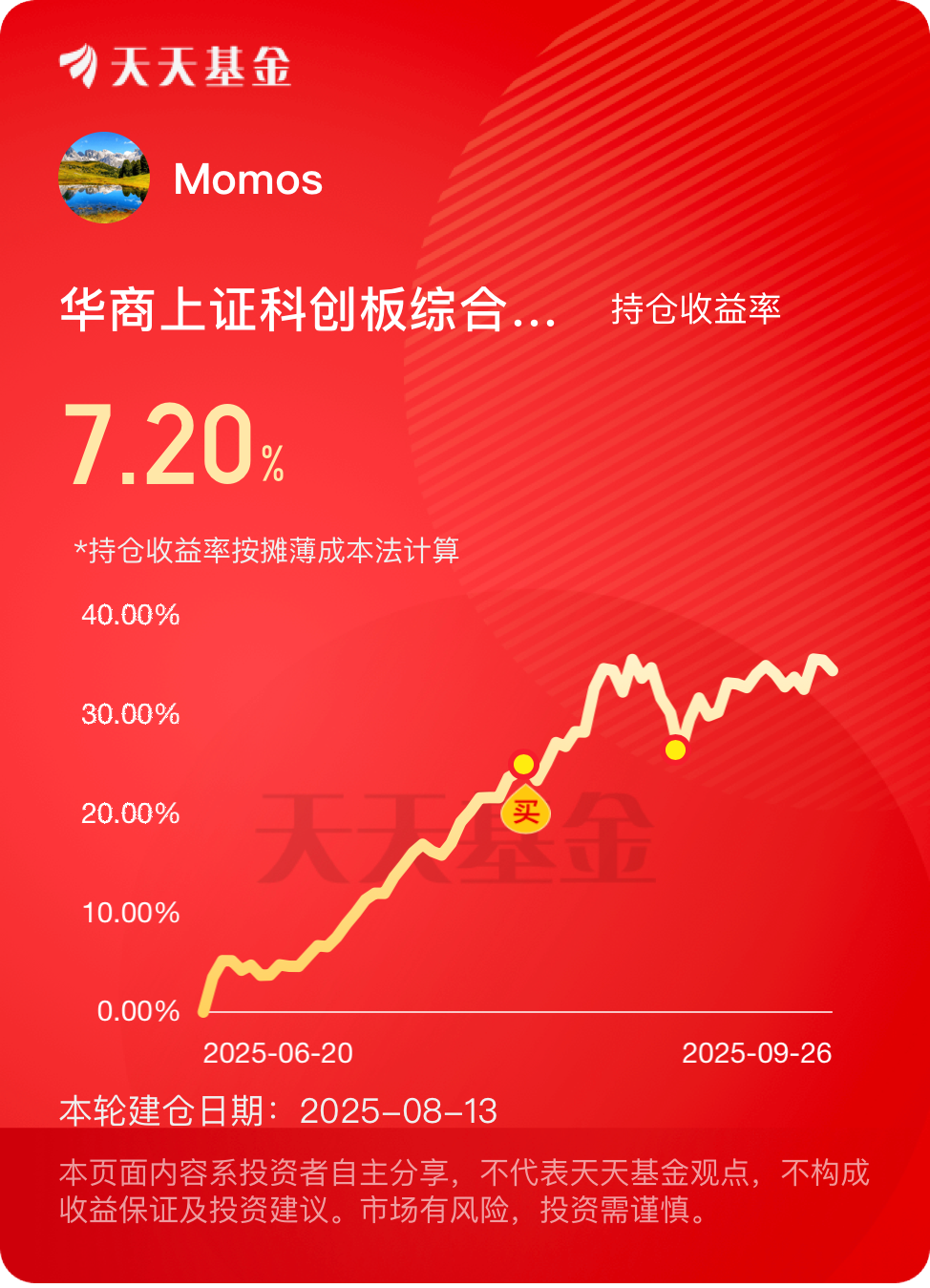 这些回调不用太慌,跌了才正是加仓时机,科创这种类型本质都是适合长期投的 $华商上证科创板综合指数增强C$ #晒收益#