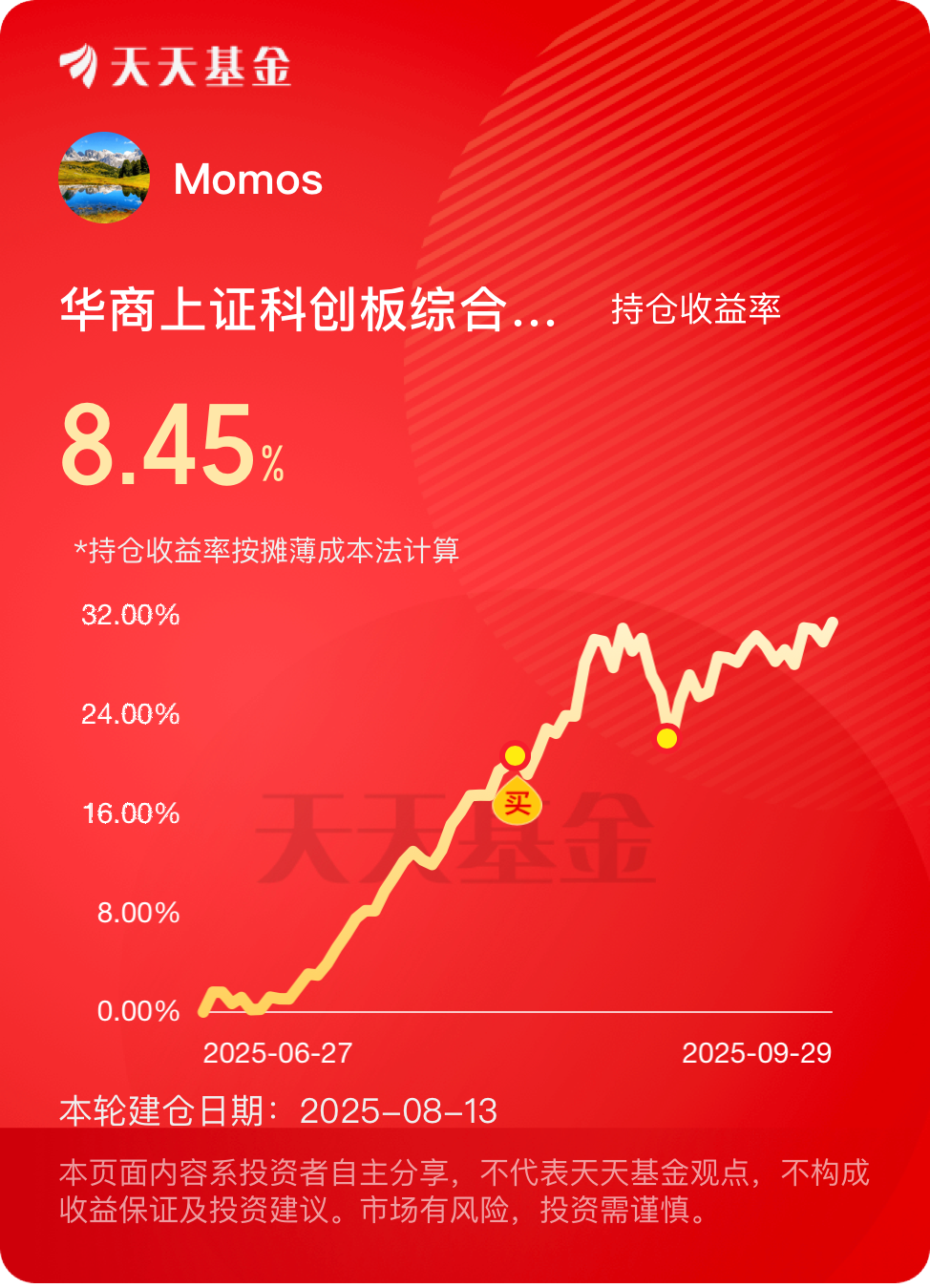 最近科技持续走高,就算有点波动也正常,定投也是不错的选择$华商上证科创板综合指数增强C$ #晒收益#