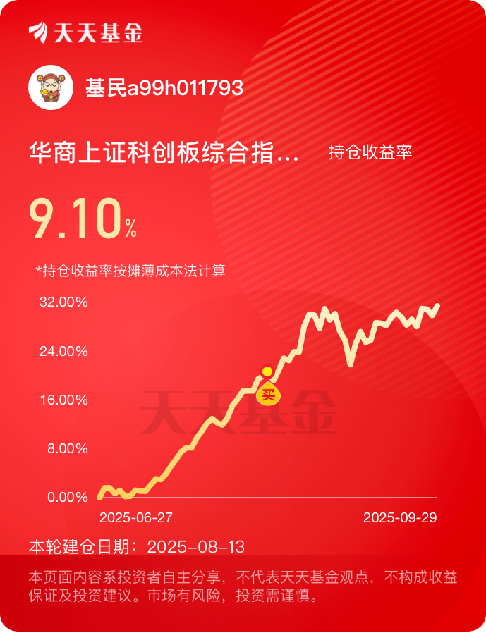 $华商上证科创板综合指数增强C$ #晒收益# 开心昨天收,这基几乎含全科创板股票,行业分散,一直看好科创板,这基就很适合