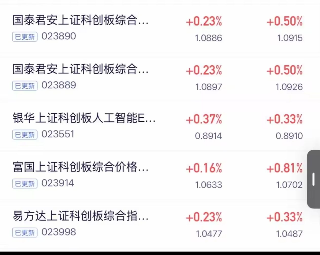 这个时候,基金净值更新了,科创板作为一