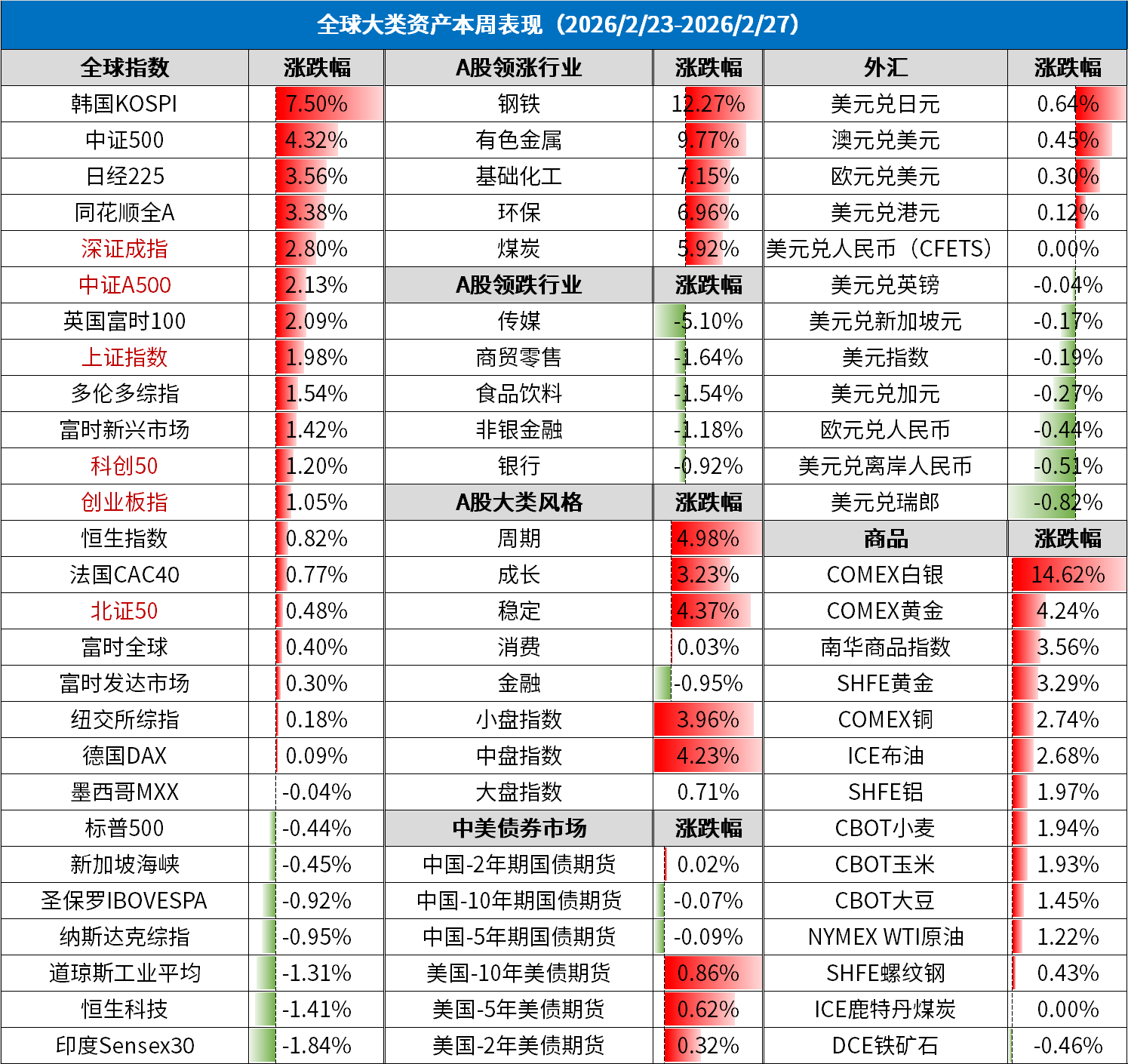 国内方面,政策托底与风格再平衡。A股韧性优于海外,主要围绕“两会”政策预期博弈。资金在“高股息红利”(防御)与“科技/设备更新”(进攻)之间进行剧烈的风格切换与再平衡。央行宣布自3月2日起将外汇风险准备金率由20%下调至0,释放强烈的汇率维稳信号,意在对冲外部关税与美元波动压力。春节消费数据偏强(日均销售收入同比+13.7%),但复工复产节奏仍需进一步验证,市场静待两会财政力度的落地。