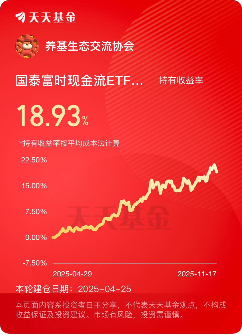 我是$国泰富时现金流ETF联接A$ 新发的时候认购的,没有申购费。当时也是想碰运气,买了一万块试试,拿到现在体验很好,拿了七个月收益率高不说,还很稳,所以我把它作为红利指数的替代在拿着。