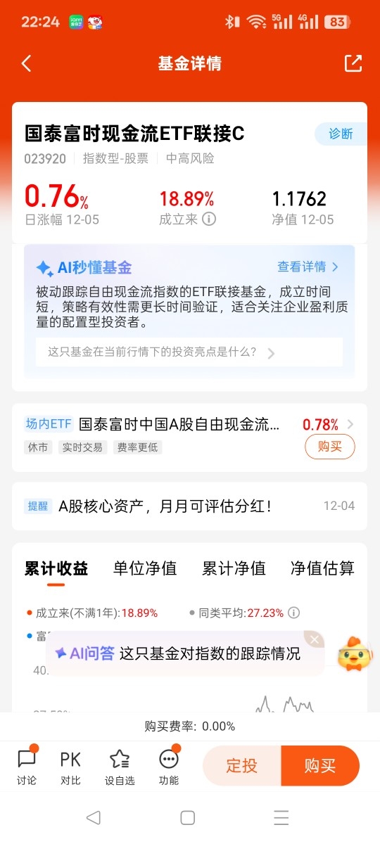 #观点搭子团火热招募中!# 本周行情偏强,12 月 1 日净值就涨 1.16%,12 月 5 日净值达 1.1762,近 1 个月涨 2.10%。其跟踪指数重仓美的等现金流足的标的,11.2 倍 PE 估值有吸引力,本周大盘价值股回暖带动基金走高。@国泰基金