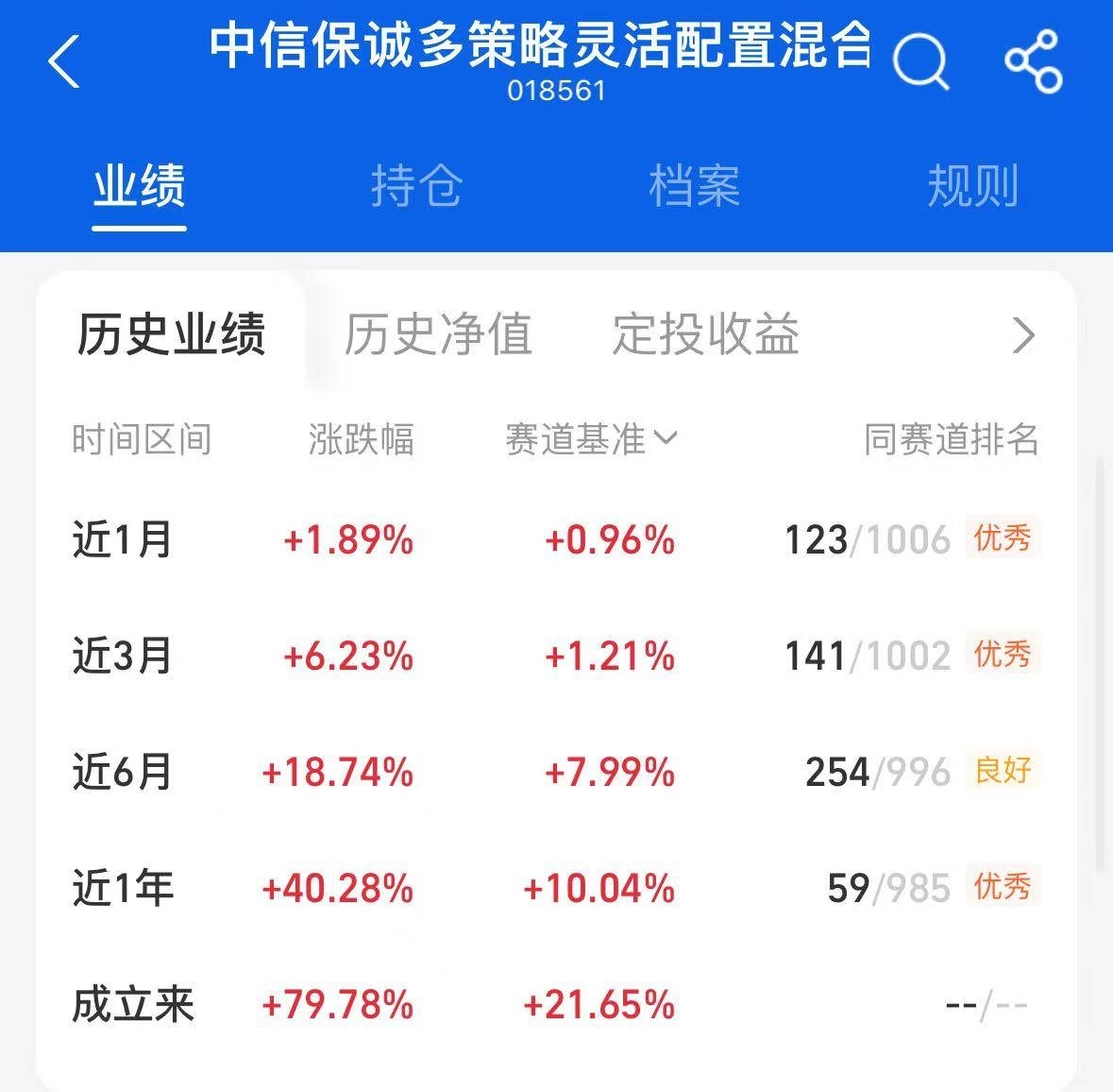 终于找到宝藏基金了。中信保诚多策略波动小、收益稳,近一年涨了40.28%。市场微
