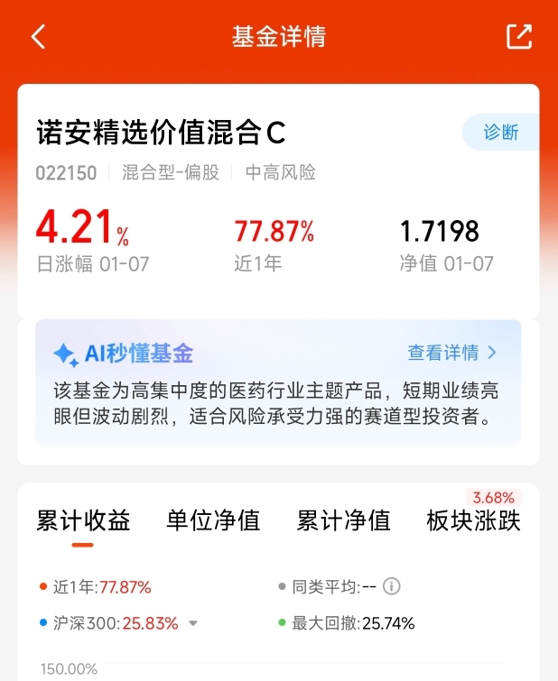 创新药中拿了$诺安精选价值混合C$,今天吃肉4.21%,抄底买对了