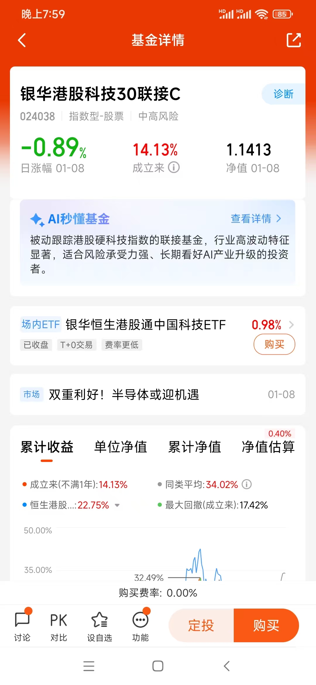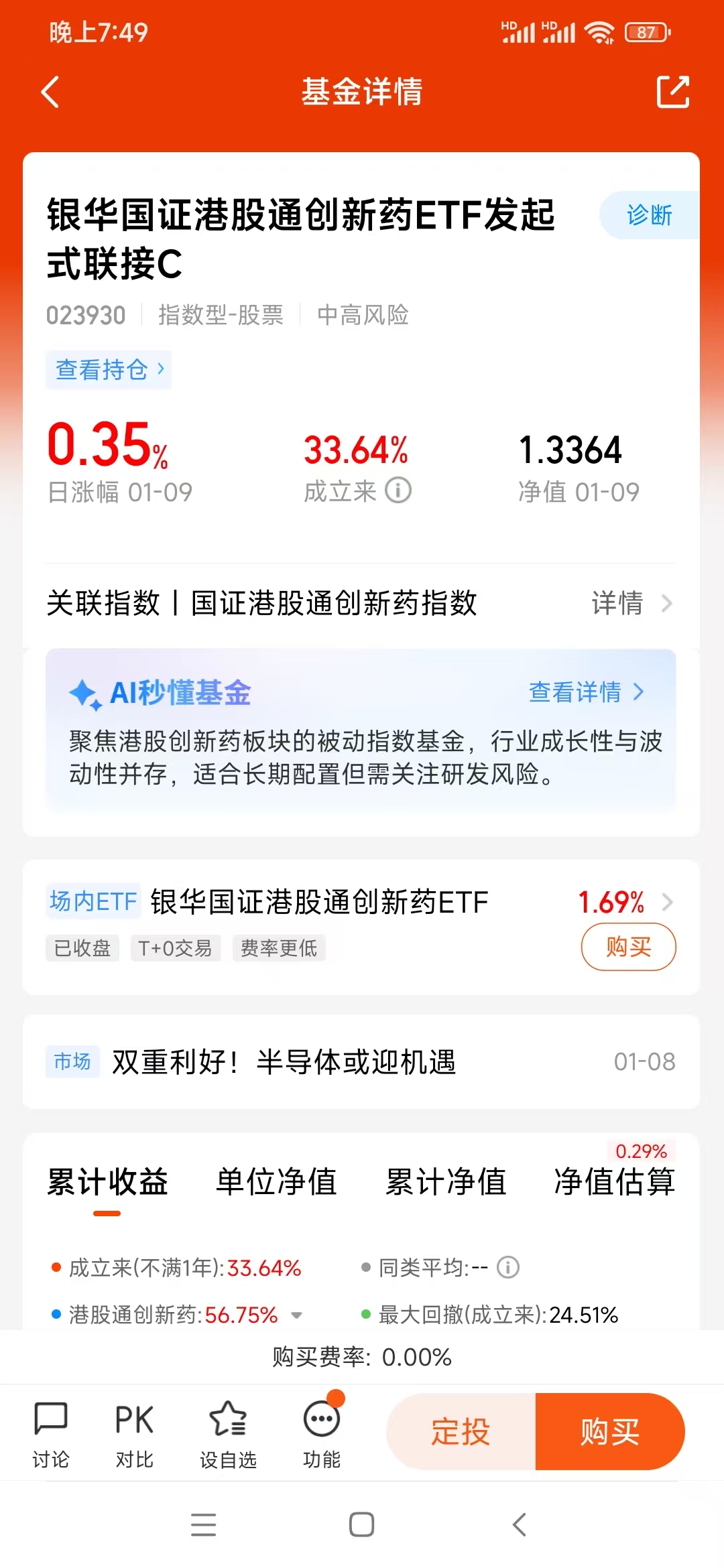 看好板块是基础,选对投资工具才能真正把握机会,这也是我坚定持有银华国证港股通创新药ETF发起式联接C(023930)的重要原因。对我们上班族来说,没时间也没精力去研究一只只港股创新药个股,通过基金分散投资才是稳妥的选择,而这只基金刚好踩中了我的所有需求点。