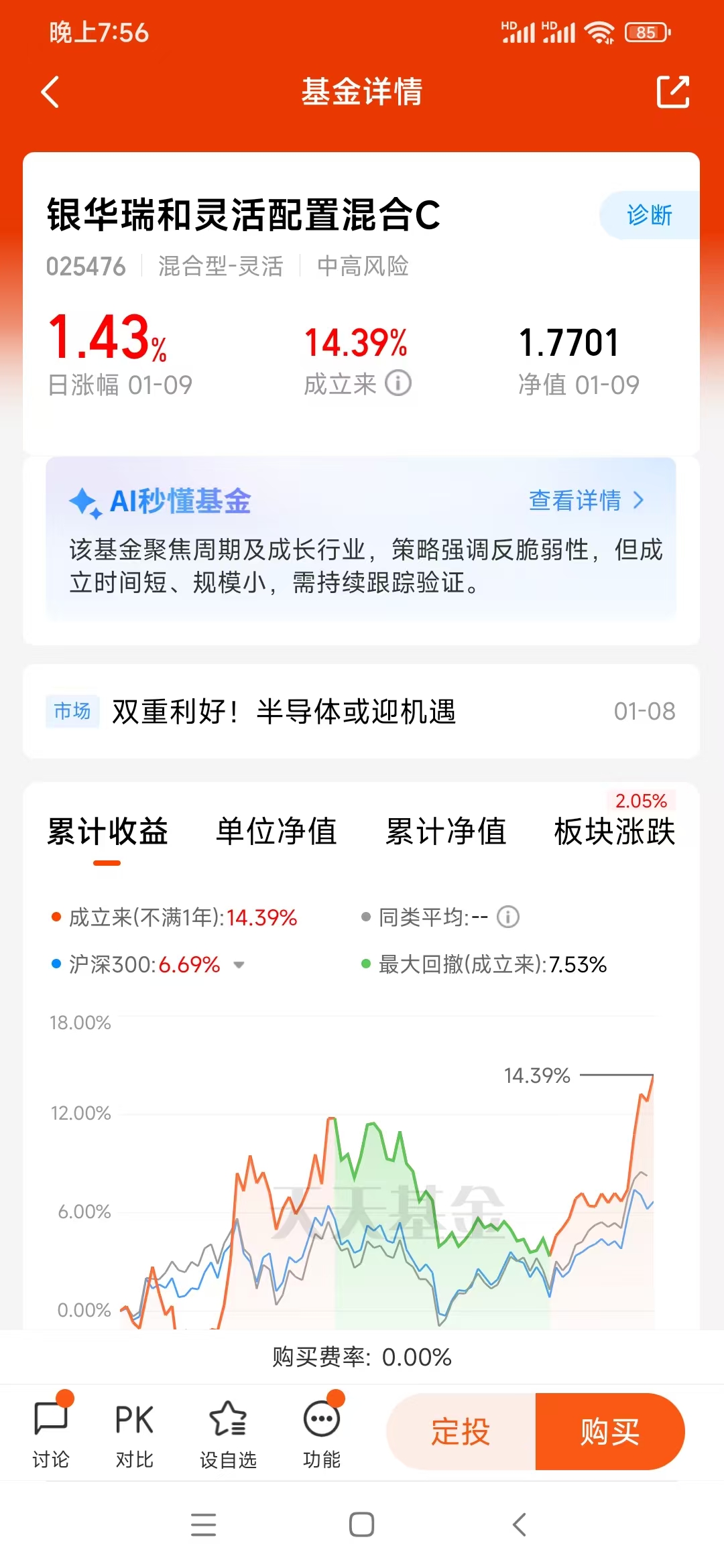 当然也不能忽略它的费率优势,这对我们上班族的小额投资太友好了。它的管理费率是0.50%每年,托管费率0.10%每年,销售服务费率0.20%每年,而且C类份额没有申购费,持有满7天之后赎回费也全免。对比市面上其他同类基金,这个费率水平绝对算低的,长期持有下来能节省不少成本,相当于间接提升了收益。对我这种习惯定投、长期持有的投资者来说,低费率加上灵活的申赎规则,几乎没有投资门槛,哪怕每个月只投几百块也能参与进来。