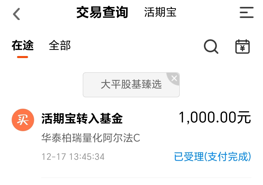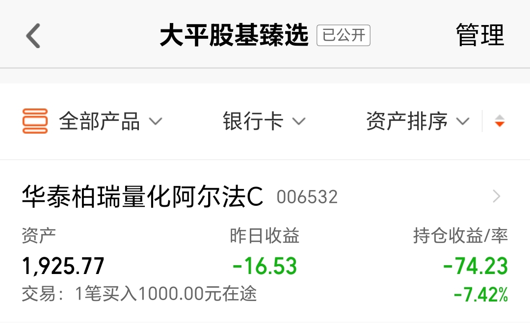 今天我买入 $华泰柏瑞量化阿尔法C(OTCFUND|006532)$1000块钱。