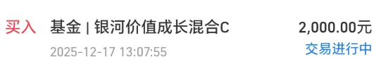 今天我买入$银河价值成长混合C(OTCFUND|016341)$2000块钱。