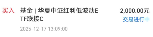 今天我买入$华夏中证红利低波动ETF发起式联接C(OTCFUND|021483)$2000块钱。