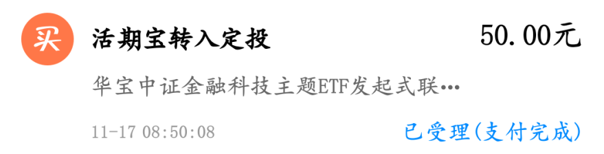 金融科技的小额定投继续 $华宝中证金融科技主题ETF发起式联接C(OTCFUND|013478)$