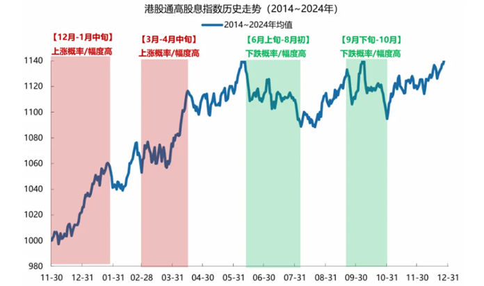 基于2014年以来的数据回溯,港股通高股息指数在12月至次年1月呈现极高的胜率。
