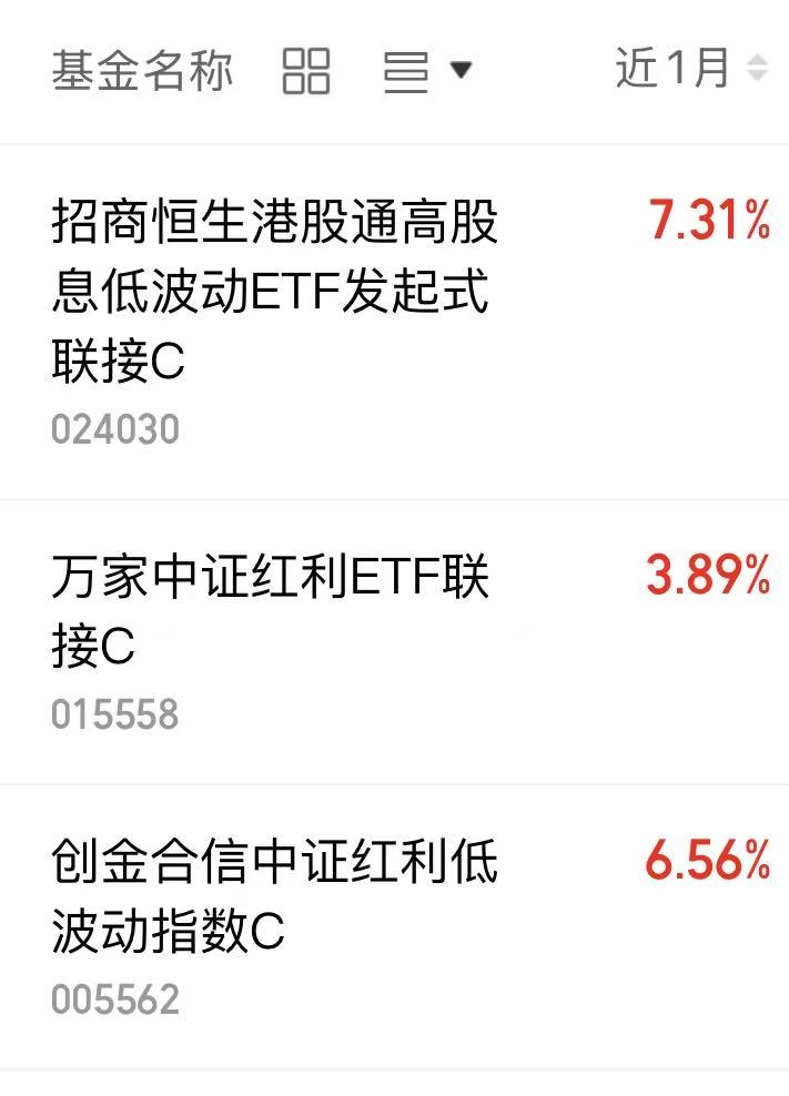 $招商恒生港股通高股息低波动ETF发起式联接C(OTCFUND|024030)$近一个月涨7.31%