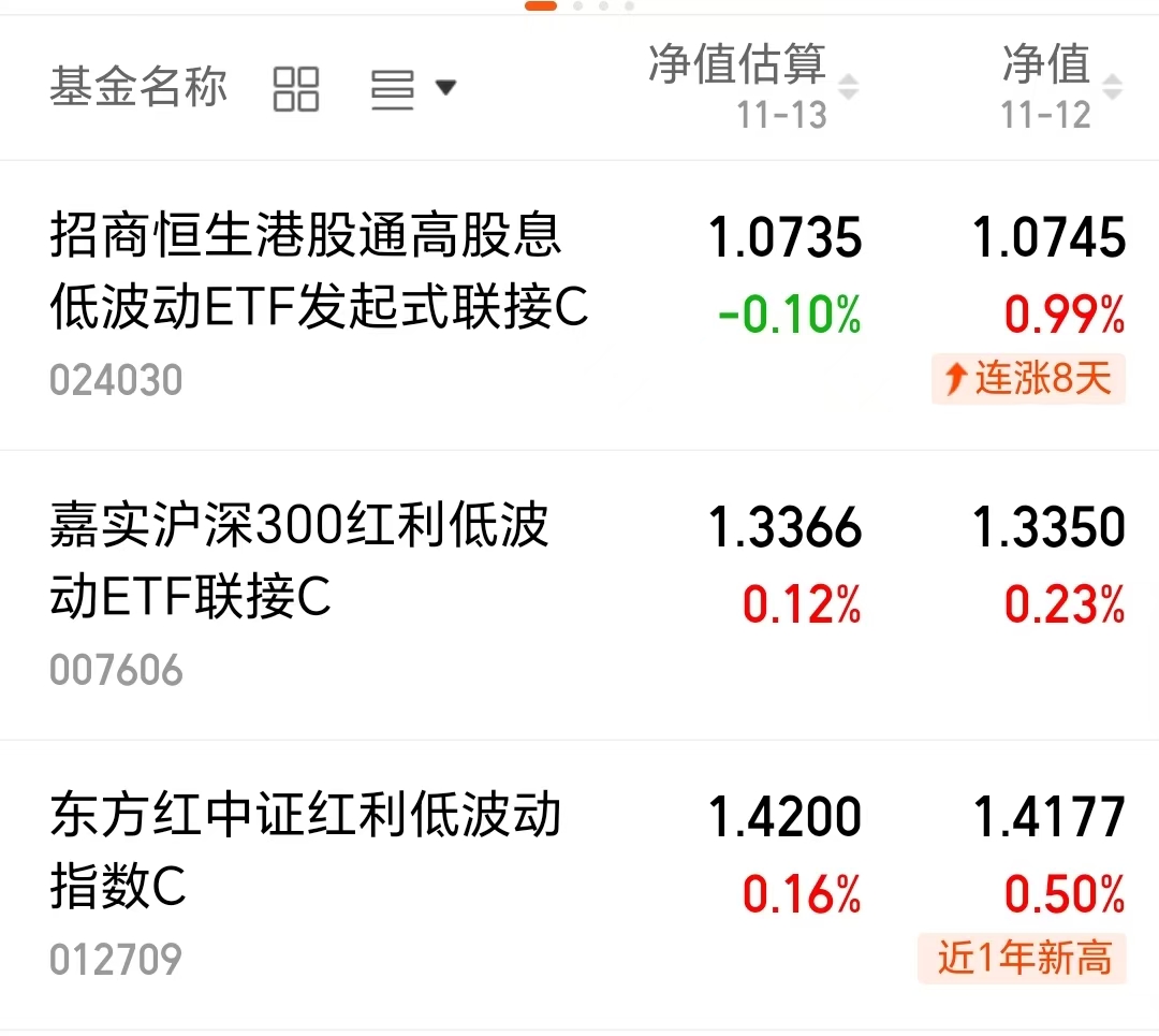 $招商恒生港股通高股息低波动ETF发起式联接C(OTCFUND|024030)$昨天上涨0.99%;