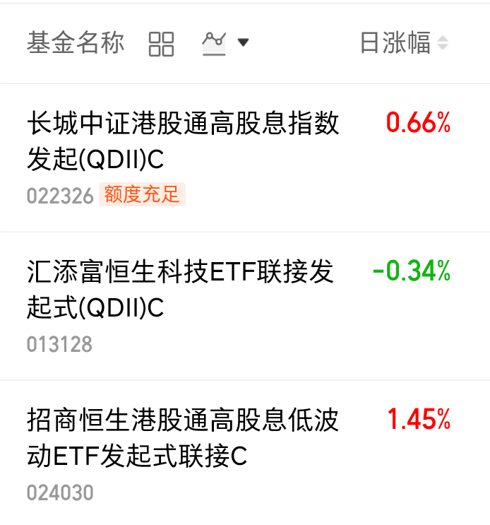 $长城中证港股通高股息指数发起(QDII)C(OTCFUND|022326)$上涨0.66%