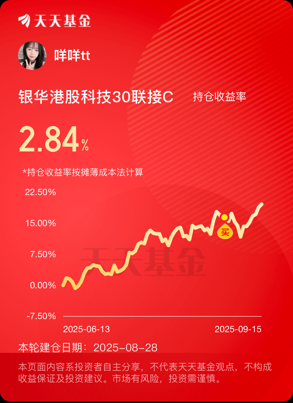 港股科技补涨刚启动,叠加降息利好提振!或加速上涨,趁今天涨跌波动不大,我又顺势加了5000元$银华港股科技30联接C(OTCFUND|024038)$,产品跟踪恒生港股通中国科技指数,AI科技含量更高,腾讯、小米、阿里、美团及中芯国际占比达45%,集中度较高因而进攻锐度也更强!年内涨幅高达47%,远超恒生科技等其他港股科技指数。若港股科技风再起,这个也有望赚更多。