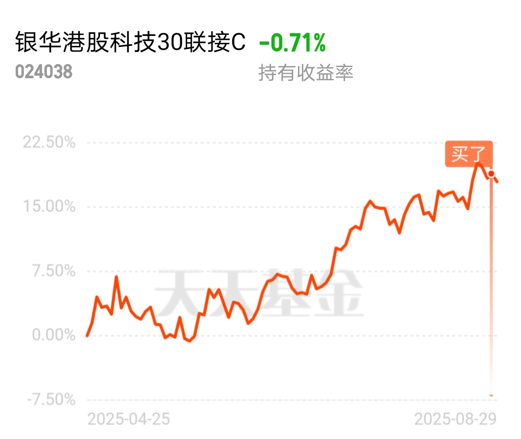 恒生港股通科技: 我今天继续加仓$银华港股科技30联接C$ 5000元。