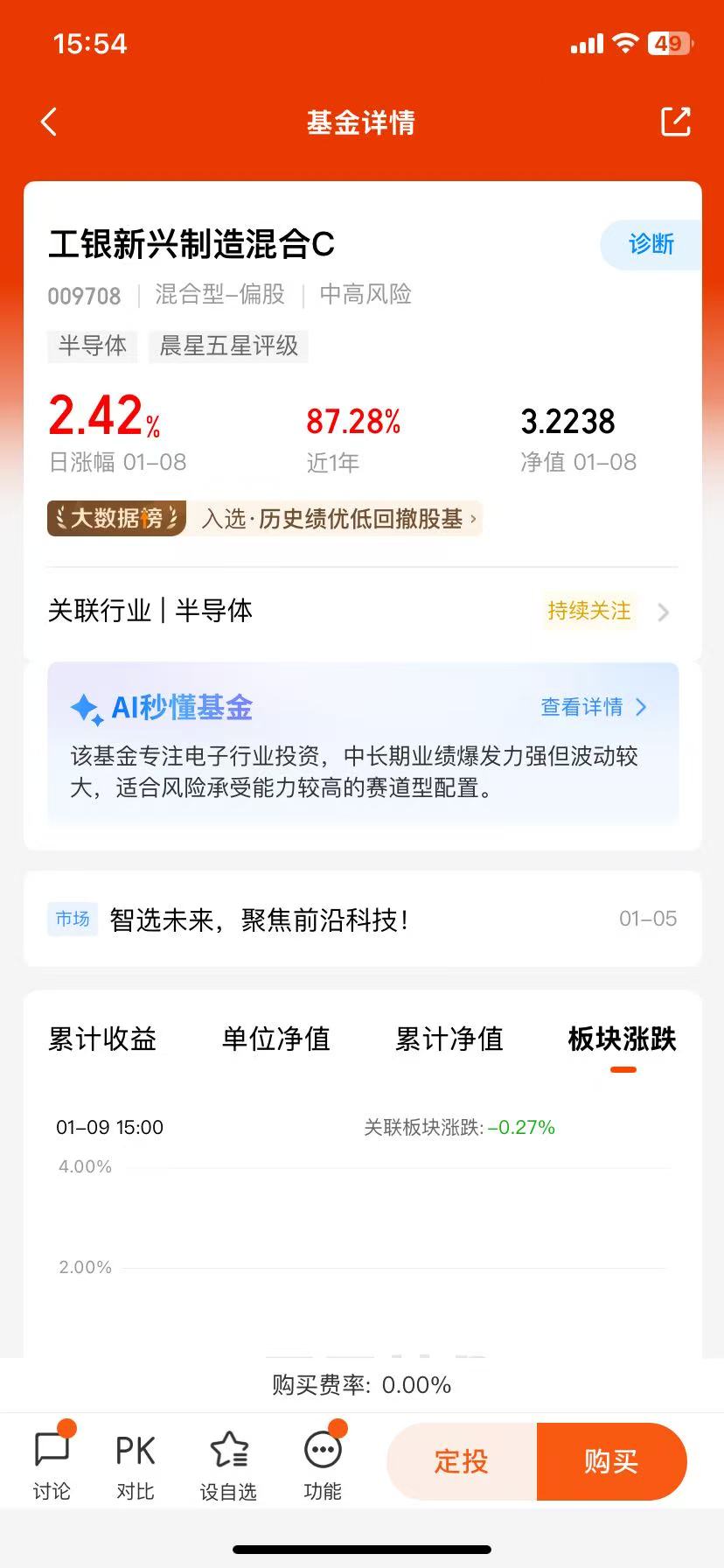 总体而言,工银科技先锋混合发起式C作为一只专注人工智能产业链投资的混合型基金,具备较强的投资价值。基金经理马丽娜的专业背景和历史业绩为基金提供了有力支撑,其对科技产业趋势的把握和风险控制能力也值得肯定。虽然基金成立时间较短,但已展现出较强的超额收益能力和风险控制能力。对于看好人工智能产业链长期发展的投资者而言,工银科技先锋混合发起式C是一个值得考虑的投资选择。