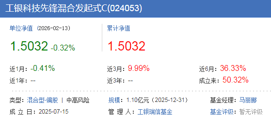 工银科技先锋混合发起式C(024053)成立不过半年,就取得了近50%的回报,这一成绩在同类基金中十分亮眼。