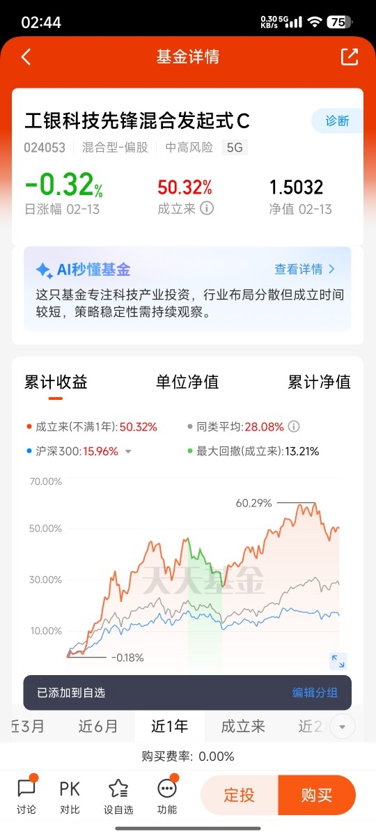 工银科技先锋混合发起式C(代码024053)是一只成立于2025年7月15日的科技主题混合型基金。它的投资目标清晰而富有远见:把握新一代信息技术引领的科技革命和产业变革所带来的投资机会,深入挖掘科技主题范围内的优质上市公司进行投资。