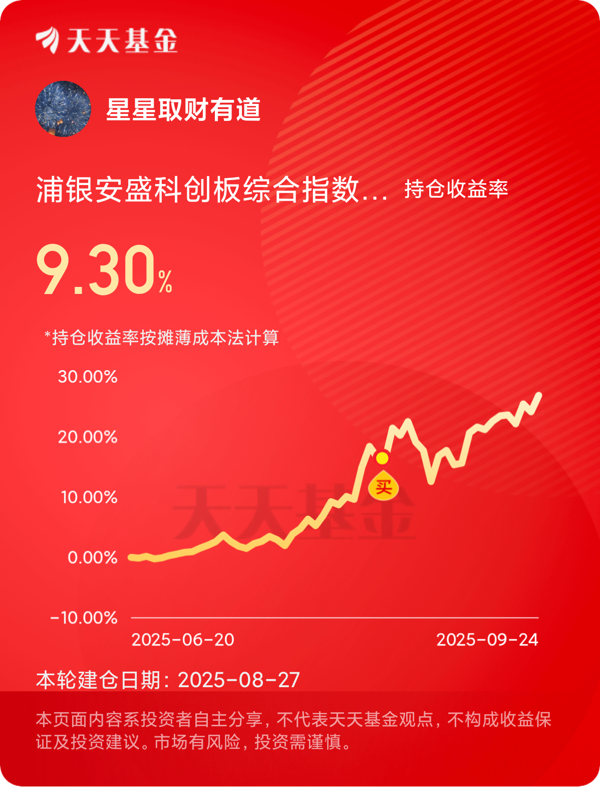 $浦银安盛科创板综合指数增强C$ #晒收益#