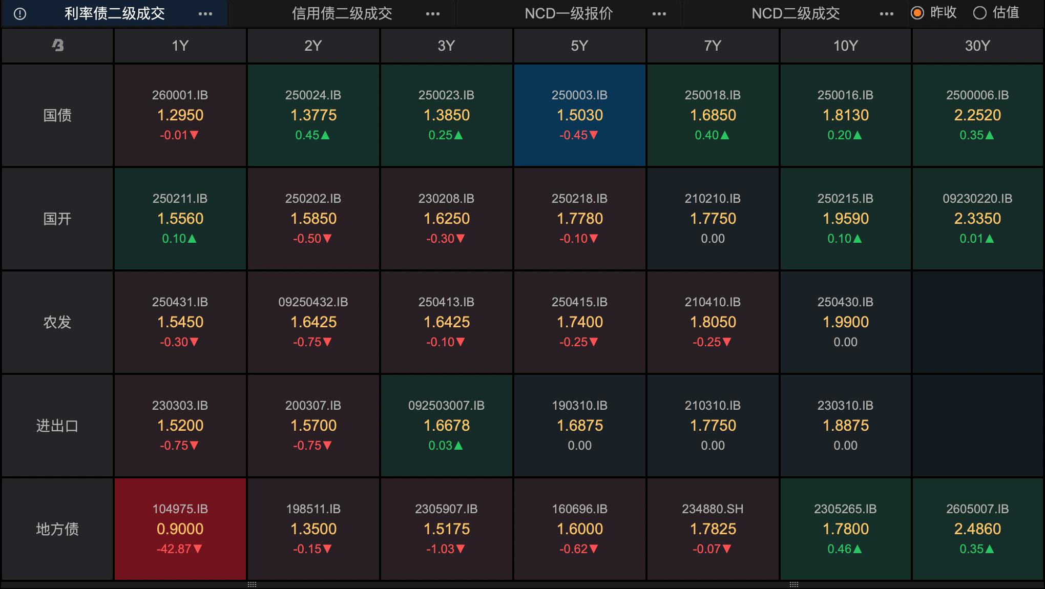 >>午盘债市表现(截至13:30)