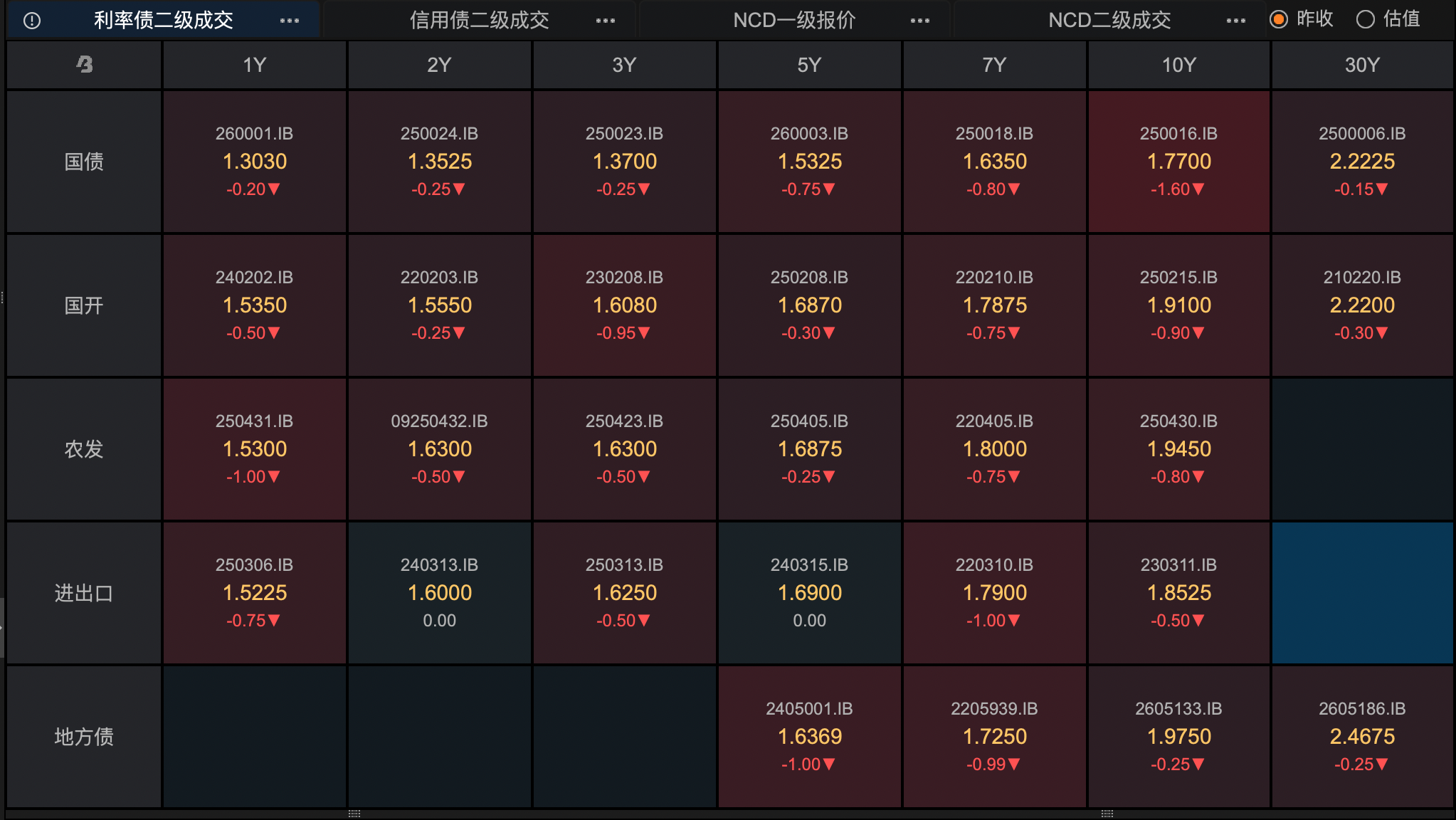 >>午盘债市表现(截至13:30)