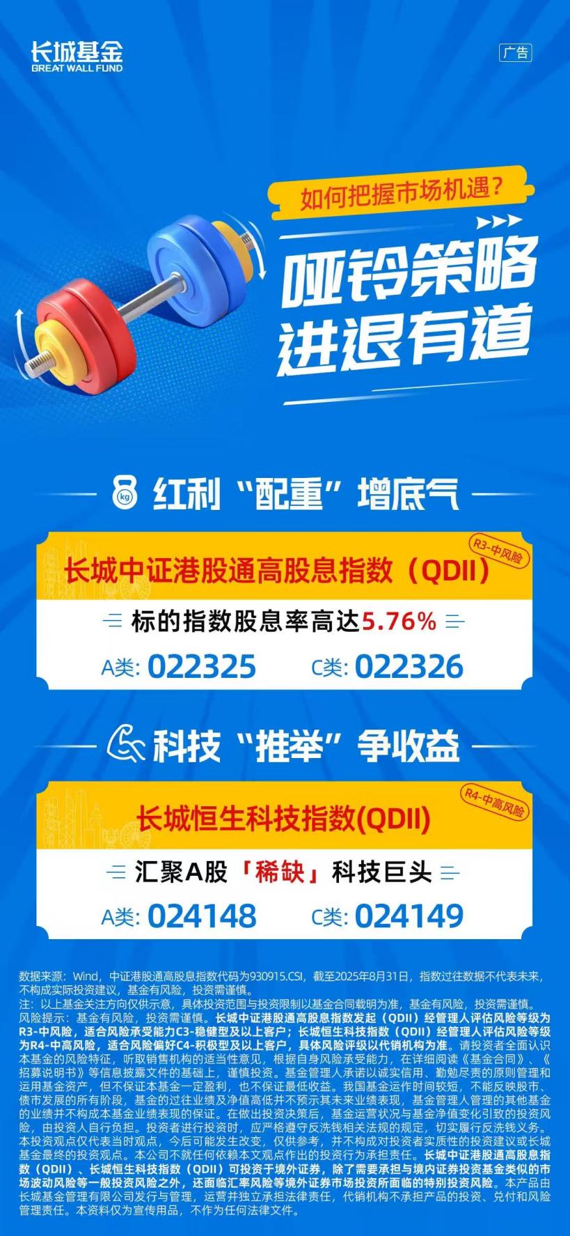 以长城恒生科技指数(QDII)(A类:024148,C类:024149)跟踪的恒生科技指数为例,该指数汇聚A股稀缺科技龙头,覆盖线上零售商、数码解决方案服务、游戏软件等多个科技细分领域。Wind数据显示,截至9月19日,自去年“924”以来的回暖行情中,恒生指数累计上涨45.48%,而同期恒生科技指数涨幅为70.20%,显著领跑。(指数过往业绩不代表其未来表现,不等于产品实际收益,投资需谨慎。)