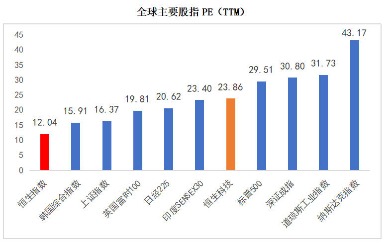 尽管今年以来港股市场整体表现亮眼,已积累了一定的涨幅,但对比全球主要股指,恒生指数、恒生科技指数目前12.04倍、23.86倍的估值依旧处于合理水平,具备投资性价比。