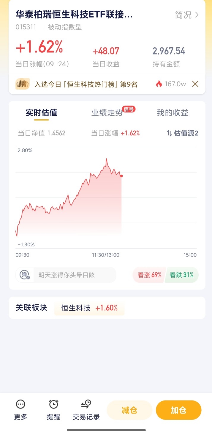 这行情背后其实有门道,“木头姐”都砸2100万美元买阿里这类中概股,外资现在特看好中国资产,而港股正是他们的首选 。加上今年南下资金都超万亿了,资金、估值这些方面看,港股确实到了合适的投资区间 。想跟着布局但又怕直接选股踩坑,华泰柏瑞的产品就挺合适,能把腾讯、阿里这些龙头都打包进去,不用自己盯个股,省心还能蹭上这波行情。#恒生指数盘中收复2万点关口 港股就此翻身?# $华泰柏瑞恒生科技ETF联接(QDII)C$