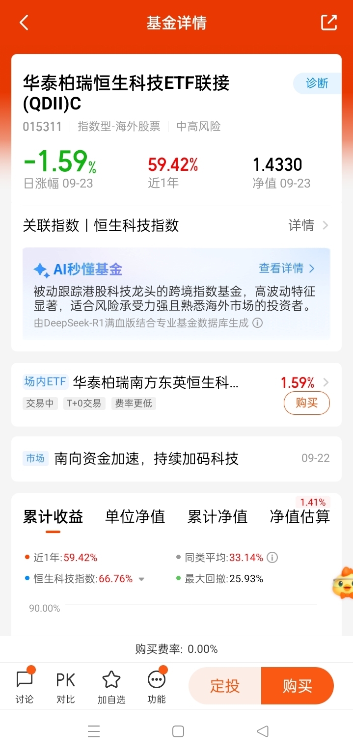 恒生科技今天走得挺震荡,开盘冲高后一路回落,最后跌了1.45%,振幅接近3%,确实考验心态。但别光看短期波动,得看背后的逻辑:“木头姐”豪买阿里,外资认准港股是投中国资产的最佳选择,今年南下资金都超万亿了,资金、估值这些硬指标都在合理范围 。想布局又怕踩坑的话,华泰柏瑞值得留意,它能紧密跟踪恒生科技指数,90%以上资产投在目标ETF上,不用自己选股,能轻松跟上板块节奏,不过还是得提醒一句,投资有风险,入市要谨慎。